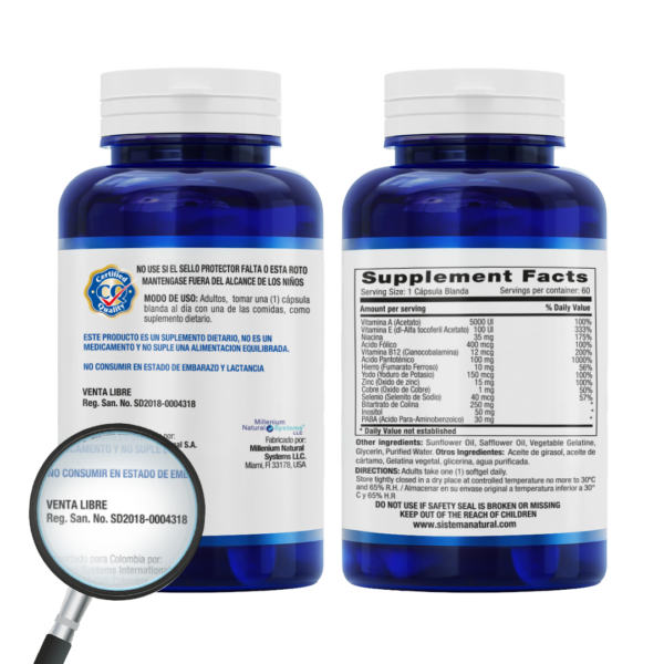 ESTE PRODUCTO ES UN SUPLEMENTO DIETARIO, NO ES UN MEDICAMENTO Y NO SUPLE UNA ALIMENTACIÓN EQUILIBRADA. NO CONSUMIR EN ESTADO DE EMBARAZO Y LACTANCIA. MANTÉNGASE FUERA DEL ALCANCE DE LOS NIÑOS.
