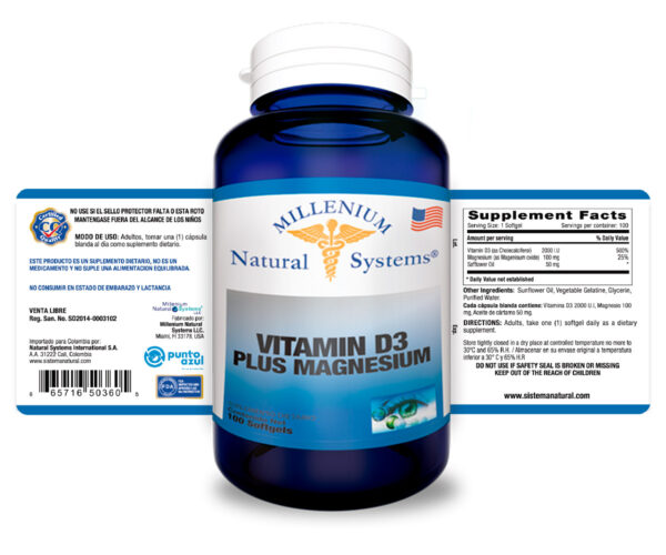 Vitamin D3 Plus 2000 UI Magnesium x 100 Softgels
